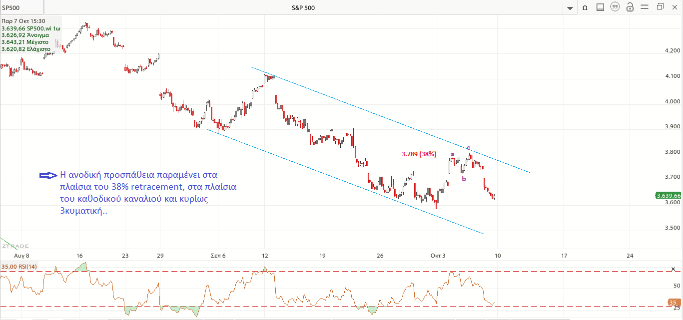 10/10/2022 Οι διακυμάνσεις στις διεθνείς αγορές συνεχίζονται. Με τις δύο τελευταίες συνεδριάσεις στον SP500 σχεδόν εξανεμίστηκαν τα κέρδη από την έντονα ανοδική βραχυχρόνια άνοδο.